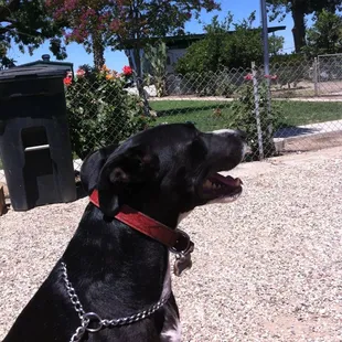I have to admit I was hesitant taking my 10 year old shepherd mix, Giovanni, to stay here during a heat wave (104° and up). The kennels are all outdoors and my dog doesn't spend much time outdoors unless we're going on walks, in the pool, or just hanging out in the grass - AKA he's a spoiled indoor dog. Here's the details on Gio's visit:He was placed in a large kennel - divided into two sections: Section 1 has cement and is fully shaded. Section 2 is dirt and without shade. I believe they also have misters, but I couldn't see from where I was standing.Food: You can opt to have your pet fed the food that is provided or bring your own. I opted to bring Gio's food, divided in individual breakfast and dinner baggies (this is Cowen's policy). Gio also takes 2 medications a day - they had no problem administering his meds.Extras: Gio being the spoiled pup he is, I opted to have him exercised and given ice cream during his stay. Maybe it was mom guilt for leaving him in the burning heat for 2 days, but I'm sure he enjoyed it. (There is an additional charge for this)His 2 night/ 3 day stay totaled $55. Gio came back happy and healthy. They even provide you with a cute report card (see attached photo) for how your pet did. A+ camper for G! Will be taking here again in the future.