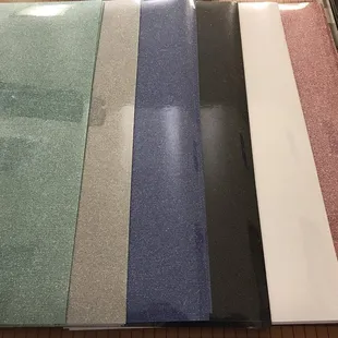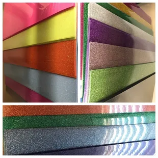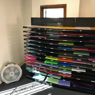 Very extensive selection of colors in a variety of different types of vinyl. I was very happy to find what I needed. The place is sorta small, but it's right on a busy road and so it's not too easy to miss. Also, be aware that they close at 2pm on some days so just be sure to check the hours before driving over. The big selection and the helpfulness of the owner will have us going here for our vinyl needs from now on.