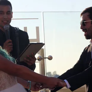 Nicholas was amazing. He was referred to us by our wedding venue (The Fifth) in Anaheim. When our officiant plans did not work out, Nick let us know that if we needed, he was ordained and could marry us- which ended up happening! He was so great at absolutely everything, and took all of our requests (no matter how crazy) seriously. We could not have asked for a more accommodating and helpful DJ (and officiant). Everything was seamless and the wedding was more perfect than anything we could have imagined!! We would recommend DJ 33 to anybody looking for an awesome, fun, and hard working DJ! Easily 5 stars!!