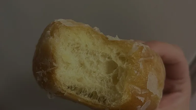 a hand holding a glazed donut