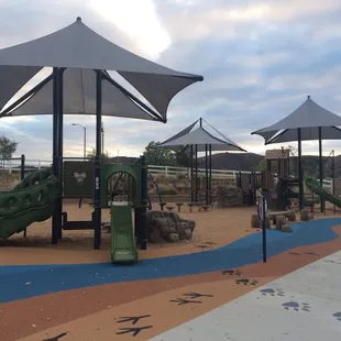 I discover this jewel a couple of weeks ago. There is a good size parking lot and a simple parking play structure that is cool. There is a really neat canvas bridge that my toddler enjoyed walking across.. It definitely could be more shaded, but I enjoyed it because we were the only ones there.