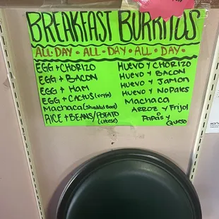 a menu for mexican food
