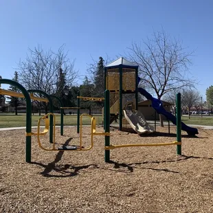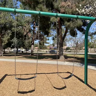 This park is super clean and there's no sand which I like because I have a 1 year old mobile daughter who would like to explore sand by stuffing her face in it hahha so the tarp and wood chips is my preference. There's nice families who also go to this park very friendly. The only downside of course is every parks flaw...the restrooms. Every park should have kept up restrooms and updated but that's a fight with the city for that hopeful wishing.