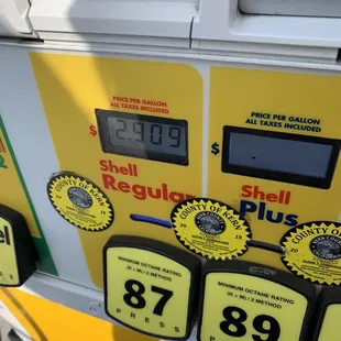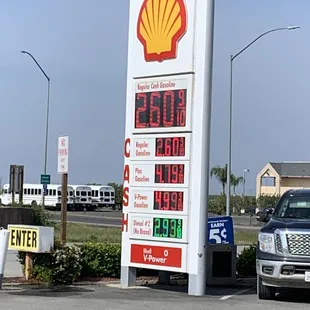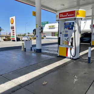 We stopped by here during our road trip down to LA. This Shell gas station has one of the cheaper prices you'll find along the freeway. We got ours for $3.20/gal after applying a .30/gal discount from promotions using the Shell app. However, an annoying thing about this gas station is that only pumps #1 - #7 belong to Shell. The other gas pump stations belong to another gas company so you won't be able to use the app discount there. There aren't any signs indicating the gas pump division of brands so you have to remember it or ask the Shell attendant in the convenience store.This location is a bit cramped since there was some renovation happening in the commercial store next to it, which encroaches the gas station's space. But all in all, we got very cheap gas here as long as you are using the right pump number.
