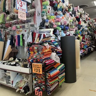 I go here because it's the biggest fabric place in town.It always feels like the place needs to be dusted.They don't have a lot of other items to choose from, such as thread, scissors, needles, buttons, and such and what they do have seems as if they were leftovers from the 1970s.When walking around the store I get the feeling as if some of the items have been in the place since day one. They don't seem offer deals or coupons (I check every now and then) The staff could be a bit more friendly, the women always seem to be angry.