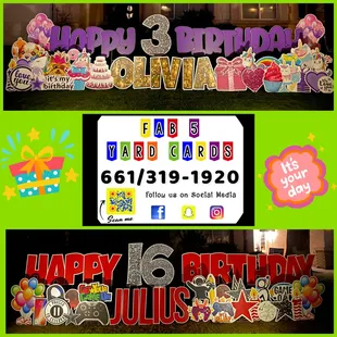 Let Fab 5 Yard Cards help you celebrate BIG Ditch the card, say it with your yard. Packages start at $75.00