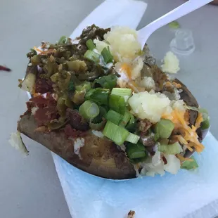 I'm a regular here at the Swap Meet on weekends- I don't know why I haven't checked in before. My husband and I come out here for different reasons: I like the early morning walks and he likes to treasure hunt - but we both come for the loaded baked potatoes. I've found some really awesome things out here..like a huge, old, (working!) vintage movie marquee for $15 annnnd some real junk- like headphones that worked for 1 hour. I personally like the far back section where its more of a yard sale vibe. Mostly why I write this review is to let you all in on the baked potatoes, churros, and roasted corn. Look at the picture.. its worth 1000 words.