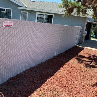 White Privacy Chainlink fence in backyard.