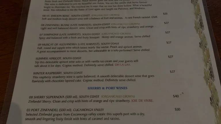 Expect the idiosyncratic and quirky at Giessinger. Almost every varietal tasted there is not at all like the typical flavour profile of that in California or France or any other region for that matter. Having said that, the next rule of thumb for Giessinger is the French aphorism, "Chacun a son gout." or To each his own (taste). In a lot of ways, this winery is in its own alternate universe when it comes to the world of wine probably reflecting the values, tastes, & perception of taste by the wine owner/winemaker. I do admire a person who can stick to his principles, and not be deflected by the opinions & tastes of others. Interestingly, I went to a Pop-Up restaurant by a chef, who is himself rather quirky in his culinary style. The chef was kind enough to post a menu with cooking technique & ingredients listed so that I was able to discern what wine might pair with the cuisine. I took my Saint Emilion from Giessinger which is an organic white wine & is made from "a rare French varietal". Saint Emilion is in the French wine growing region of Bordeaux but produces only Merlot, Cabernet Franc, & Cabernet Sauvignon which are all red grape varietals and are not particularly rare. So is Saint Emilion by Giessinger made from white grapes outside St. Emilion but still in Bordeaux? Perhaps it is made from a Bordeaux white grape varietal such as Semillon, Muscadelle, Ugni Blanc, Folle Blanche, Sauvignon Gris, or Colombard. Who knows?Giessinger Winery or at least its owner/winemaker is a mystery wrapped in a paradox, placed in a conundrum, locked into an enigma. Quite a few of the sweet dessert wines and ports are infused with other fruit or chocolate flavours so this might also be a bit unKosher for the wine purist. 3-- Yelp stars when one is in a forgiving mood.