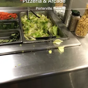 Although this place has room for improvement, I enjoy visiting as it makes my little guy happy. Pizza was good as always, fresh and right out of the oven. Just the right amount of sauce, good amount of cheese. My little guy ate most of it.I took a chance on trying the salad. I've seen multiple other customers enjoying theirs and I'm glad I did. The greens and veggies were all fresh and I appreciated that all the dry toppings were served separately. And it was a HUGE salad. Made two meals out of it. All I was missing was some added protein but was not disappointed. I would definitely order again.