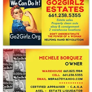 If I could rate this company higher, I would. Michele is a living doll, guardian angel, and honest as the day is long. From the first inquiry phone call, we knew there was something special about Go2Girlz. Her enthusiasm for treasures and putting them in people's hands is reassuring. She is friendly, organized with a fantastic team and is highly experienced in the estate sale process. The set up/staging was handled by her workers entirely. Everything was priced well to sell and, again, her sizeable crew handled the sale days beautifully and efficiently. After the sale, we requested her team clean out the remaining items. Her squad took items to donation and made a final trash run. We cannot say enough kind things about the whole hands-off operation we were looking for. It allowed us to go through the loss of our parents and grieving process without the heart-wrenching sales staged on top of it. Michele provided an itemized general inventory of the proceeds with the check expediently. Highly recommend!