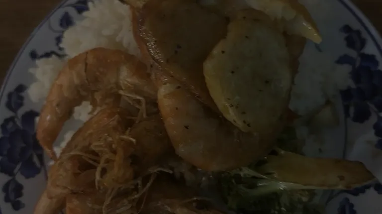 Sticky rice, teriyaki chicken, broccoli beef, mussels