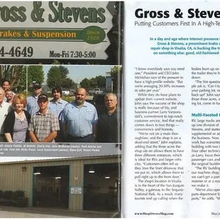 I can always depend.on Jeffto give the real on my car. What's wrong with it, if the work should be done immediately, will it effect how my car drives. I can't always get to them cause I'm in Tulare but I make time for them because I value the opinions and quality of work they provide. Gross and Stevens sticks to what they know and they do it well. I appreciate their service.