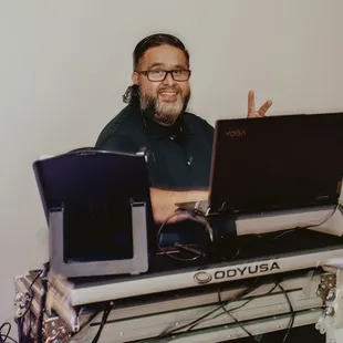 I have had the pleasure of working with Jesse for many years now as a Photo Booth company we come across a lot of DJs. We have also personally hired him several times for corporate events. We hear a lot of feedback in the crowds. All positive when it comes to his work. Jesse is fabulous and polite and music is always hoping. The dance floor is full he is always on point and gives your event that personal touch. He is a great man and a great choice for your music.