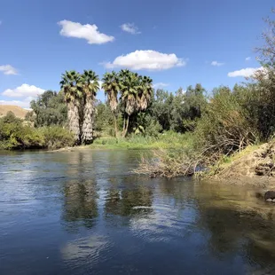 We had a great time at this campground, we stayed at site 44 and had beautiful views of the river and it was lovely hearing the river flow by, the restrooms are renovated since 2022 and the showers are free with great water, pressure and temperature Restrooms very clean, we did the 2 mile hike around the lake, it was a bit hot, but beautiful and saw some birds and lovely nature.