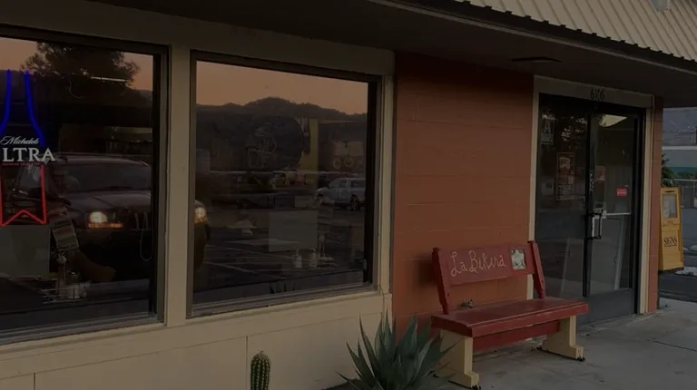 Bench out in front of restaurant.