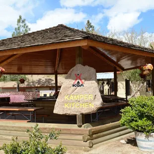 So we have been staying at KOA's since our Yellowstone trip and we love them. We have done the camping from tent villages to single cabins. But this was the icing on the cake because we were in a deluxe cabin and it was AMAZING!!! The cabin had two rooms, one with a bunk bed and one with a queen bed. Upstairs there is another queen pad so you can sleep on. Just be careful because the ceiling lays low so better for kids. But caution, it is easy to fall down the stairs so be careful. So maybe not suggested if you are a sleep walker.They have a decent sized dining room with a fridge, sink, microwave, and eating utensils-plates, bowls, forks, etc. You need to take your own bowl with you to the Ice Cream social on Friday nights and your own plate to the Pancake social on Sunday mornings. The plus is we had our own bathroom so we didn't have to use the community showers and toilets. Def a plus during these bizarre times, right? There is a bar inside also but due to COVID it was closed...bummer!!! But we will be back for that because they have activities in there throughout the year. Sounded like a lot of fun.They also have a pool, splash pad, dog park, and playground for the kids. The pool got a little too busy so we didn't get to use it. Still not comfortable with the whole pandemic going on so didn't want to take a chance. Due to the fire in Sequoia, we were really limited on things to do since a lot was closed. But if you are staying there anytime soon, you can drive towards Sequoia and stop off to the side of road to see the Kern River just be careful because air quality is pretty bad. You can also visit Kernville for a day because it is really close which was suggested by our hosts in the office. Overall, this campground is great. It is clean and the hosts/employees are friendly. It is a quick getaway and not too far from LA. Def a must see and stop for everyone.