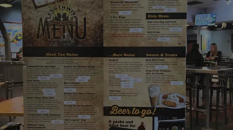 Day of reckoning at Lengthwise today we met to settle all our NFL bets Lengthwise wasn't real busy as I entered. I was greeted by Josh. The new ownership had great background music playing. We've always enjoyed the food and excellent brews here . Plenty of room for your groups with 8 TV's. Josh took our individual orders up at the bar Josh was very professional and fun. After a short wait our lunches were brought out and all looked delicious cheeseburgers, fish tacos, Italian sub, chicken artichoke salad,Onion rings. We all enjoyed the different beers along with their root beer. After a couple hours all the lunches and drinks were enjoyed bets settled. Lengthwise was the perfect place for a great gathering Check them out and the try the Citra beer it's my favorite