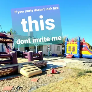 This picture can help you choose all your party rental needs,book us now!!