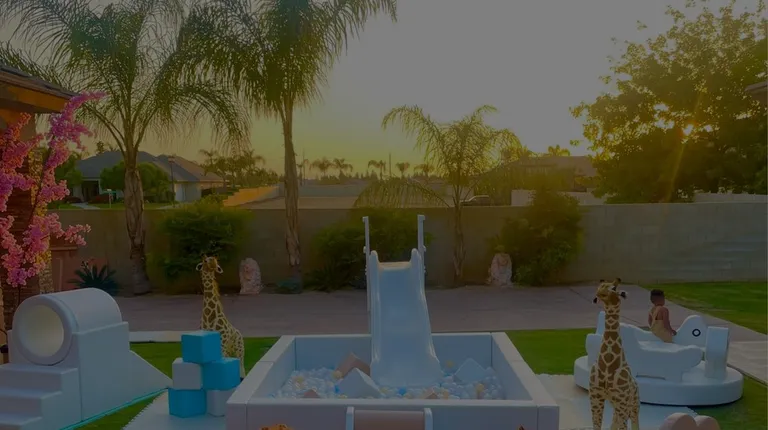 This 5x5 tan white and blue soft play playground perfect for your next even. Book now! The beauty is in the detail