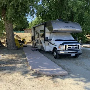 The campsite is a giant dirt parking lot. The sites are so narrow there's no room to be outside your RV. Definitely not as advertised. The upside was it was quiet.