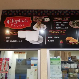 a menu on the wall