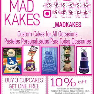 Delicious costumes cakes for all occasions and cup cakes. Taste delicious and great customer service and on time. I highly recommend MAD KAKES to everyone.