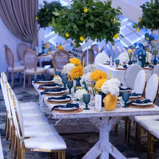 Our venue, set up, flower arrangements