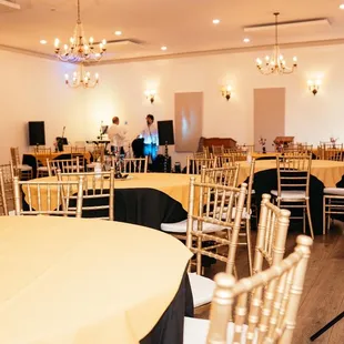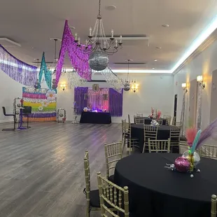 I had my daughters 15 here on 02/08/2025 it was so good with their professionalism helpful and they have tables for use and chairs bar , kitchen, refrigerators affordable woman's bathroom has flowers. Parking chandeliers