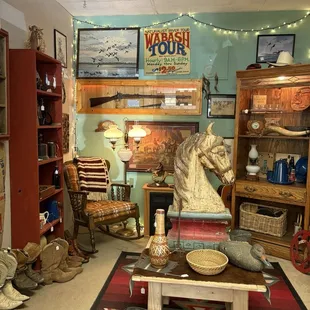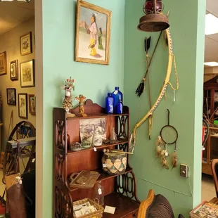 One week ago I would have given 4 stars but I went in on my month trip over the grapevine and upon entering I was promptly told that my dog wasn't welcome to come in. So I got in my car and left. I have brought him in several times before and said that to her. She replied "not when I am here!" Anyway the strange thing was that it was going to be my last time going in because we are moving, sad because I have purchased many things there..........sorry but its an antique store not a restaurant.