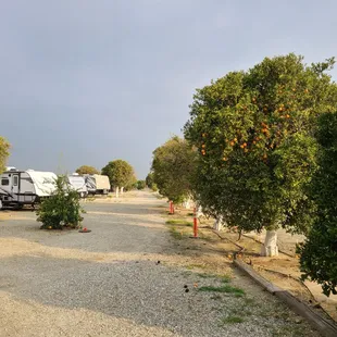 really liked this RV park. Level spots and they are very long. Also, when the oranges are ripe, you can pick as many as you want and they supply the pick tools for you. You can definitely hear a bit of road noise from the street next to them and we heard that if you are in the back, you can hear the freeway a bit. But, otherwise, it's quiet. Staff is very friendly. They have a nice lodge area that you can use with a pool table upstairs.