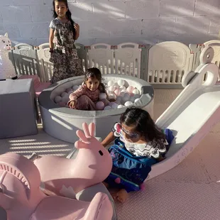 Littlest ones busy playing in the Soft play setup. Age range for kids in this pic 1-4years old.