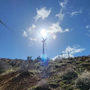 The parking lot is on the right unmarked and unpaved so don't miss it. The trail is super hard to find if you are not looking for it and the grass and shrubs are overgrown. It was pretty cool to be under the turbine windmill though! I recommend if you are going around fall, to make sure to wear gloves and a fee layers to keep you from all that wind! Keep safe and warm out there!