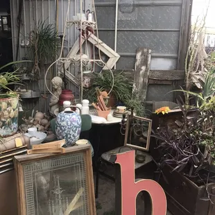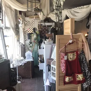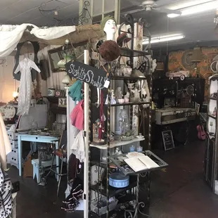 This place is really more like a star and a half than a full 2, but I don't have that option.Why so few?*lots of stuff outside, exposed to the elements and getting ruined*Prices affixed to vintage clothing with STAPLES (Absolute No-NO!)*High prices*Lack of quality*random bras strapped to various stautues and whatnot-bizarre.I'll agree with the other reviewer that likes the offer of free hot tea, but the rest of the experience was not so soothing and homey.