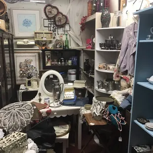 Whoa this place was a tad too weird for my liking.....actually weird isn't the word because I do appreciate the 'strange and unusual' of sorts. This place is very dirty, dusty, outdated and well not very well taken care of. I understand fully that it's an antique shop but the ones I've been too aren't this scattered and shattered. May I add that it's expensive as heck too. I didn't see anything under $10 and worth that except for some larger furniture and maybe some vinyl. Young girl working the counter didn't even greet us walking in or acknowledge our presence. Sad, just sad.....