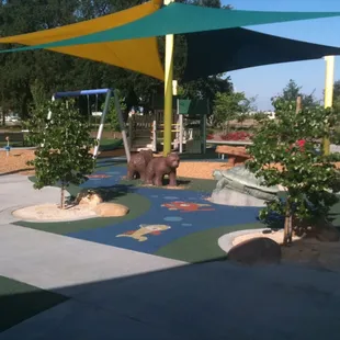 Clean, unique playground and walking path. We were traveling through and this playground provided a great way to burn off some energy before we hit the road again. My children ages 6 & 3 loved it. Plenty of shade, open spaces, and playground equipment that we've never seen before!