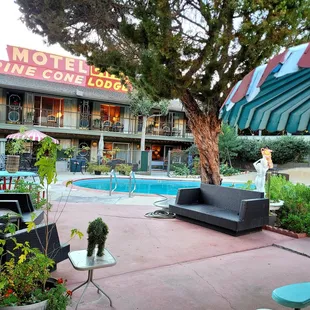 Amazing hotel. Very cute inside and out! Great location in Kernville, walking distance to restaurants and bars! The pool area is awesome! Interior of the room was so cozy with wood panels, felt like a little cabin! Comfortable bed! They change sheets after every stay and they set them outside your room so you know! They have organic coffee with actual mugs to drink and a porch chairs to sit in! Can't say enough good stuff about it. One big complaint is the shower was horrible for both of us. Either way too cold or too hot- it would have been a 5 star if not for the shower problem!