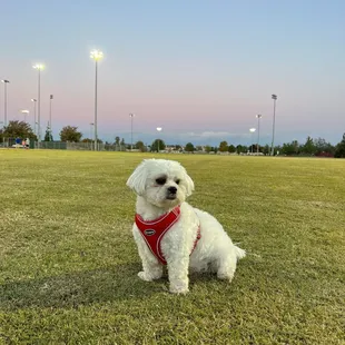 I did a road trip from Norcal to SoCal with my dog and needed a quick break. I found this park which was conveniently on the way to our destination. It's humungous so there's tons of grass for your dogs to explore. The grass is also very well kept and the surrounding areas are clean. There's tons of parking so you don't have to worry about finding a spot. A lot of kids do come here for baseball and soccer tournaments but there's a ton of field to go around. Overall, my dog and I had a great time.