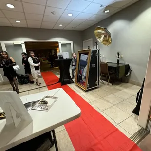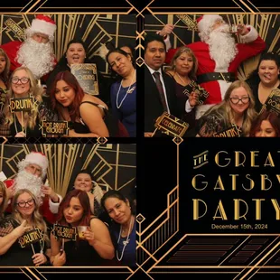 Party guests taking photos at the booth