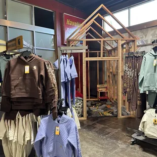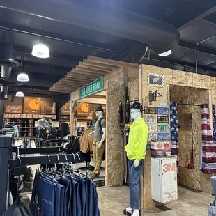 This is a newer establishment in town. My boyfriend really wanted to check it out because he saw a friend posting it constantly and I'm glad we did! There aren't a ton of places in town with a wide Carrhart selection but this place has a ton of variety! From the moment we walked in we had more than 1 employee greet us and ask if we needed help looking for a specific item. Price wise there's a wide variety and it's what you'd expect for each brand they carry. Besides Carrhart we were also excited to see Ben Davis is here. There's a small kids section and a small women's section. The kids section had a little play house for kids to relax which is great for families out shopping. The majority of the store is men's clothing but can definitely be duped as unisex. This was my first time here but I'm sure we will be back soon! They also have a custom hat bar which was super cool!