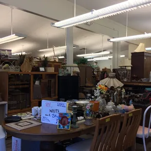 Love this place. The prices are actually thrift store prices with daily deals and they have a great selection of glasses, furniture etc. the only thing lacking in my opinion is the clothing section but it's not that big of a deal. The employees were extremely friendly and helpful and made me feel very welcomed. Thanks Shar!Edit: one con is their hours can sometimes be unreliable. They often open late or close early.
