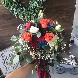 Elegant bouquet, not too big and not too small. Wedding designer customized it not only to my taste but also my size!