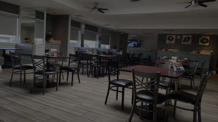 I hate to give it such a low grade as the waitress was very kind and helpful. However, here it goes, the room was about 60゚... very uncomfortable, ok it was freezing but the free breakfast felt it was worth the risk. We attempted a couple different dishes. My wife's eggs were cooked perfectly..over-medium and pretty good bacon. The toast was barely toasted and soaked in melted .. I assume butter. The coffee not so good but drinkable. The fruit was under ripe, my egg & cheese omlete was 50 % cheese ..sounds good right?, and initally it looked good. Unfortunately, it was not warm enough to melt the cheese. The cafe was clean and organized. And for free I hate to complain.For the record the gal at the front desk needs to go away. Three separate experiences (see below) and each time she was unprofessional, appeared sad, mad, and tire or hateful toward my wife and I. whatever it was it was a big turn off. She would be gone ..no second chances.1. The initial check-in. 2. Towels for the pool. 3. Free breakfast Chip. I refused to get the chip on day 2.