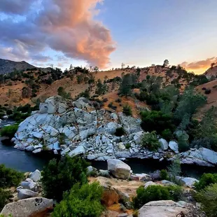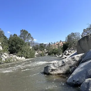 Don't come here if you're looking for peace and quiet. We were in #28, no shade, directly across from a group with a PA SYSTEM!! blasting ranchera music all day long. They bullied other groups who were also trying to play music by turning theirs all the way up. They did turn it off after we complained to the camp host but they still had a loud motor (generator?) running until late night and there were other big groups who were also loud. Other parts of the campground were quieter so we may have just had bad luck. Two stars for the helpful camp host and the refreshing river. We left at 10pm to go to a motel in Kernville, the only place that had an open room, so we could finally have calm and quiet.