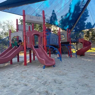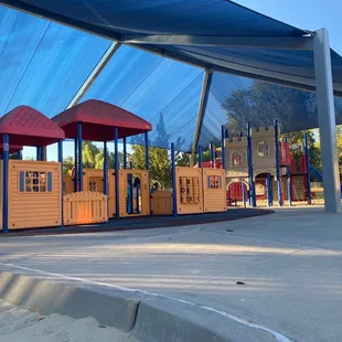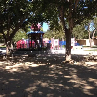 Cute little park for the kids. I would definitely come on a shady day. This park is in the full sun. There is plenty of parking & bathrooms.