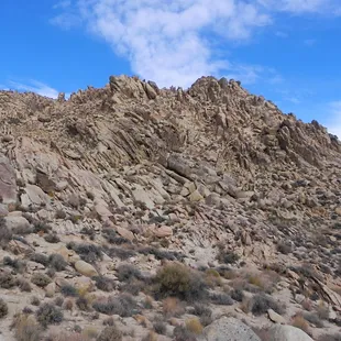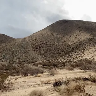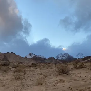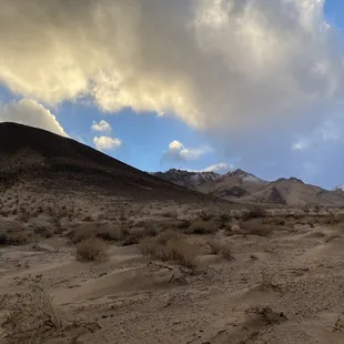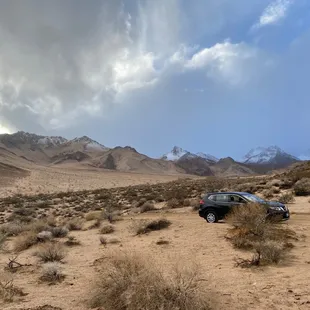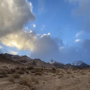 The best spot to relax in to watch the snow packed peaks in winter or Super Bloom near April. It's only a 10-15 min drive from the main road, just east of Highway 395 for access road next to Brady's Market aka Mobil Gas Station. Right turn off 395 South, left over divided Highway from 395 North...look for the giant billboard. Accessible in my common Nissan Rogue and PT Cruiser during light rain, but I parked at pipeline crossroads due to softer sand on the dirt path to the peaks. Amazing View with some R&R time.
