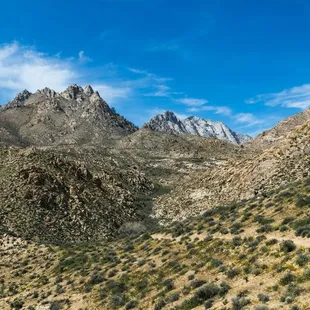 One of the best times of the year to visit Short Canyon is in late March and early April. So many wildflowers are in bloom around this time, including the California poppy, Indian paint brush, and Grape soda lupine. Oh, and the view of Owens Peak and Five fingers is pretty good also.