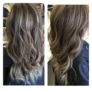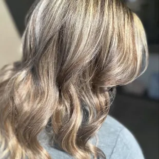 A mix of hand painted balayage and baby lights. Hair cut and color by Daniella.
