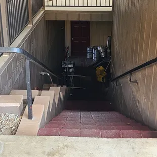 The trip hazard stairs to the pizza parlor