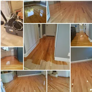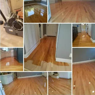 a series of photos of a hardwood floor being sanded